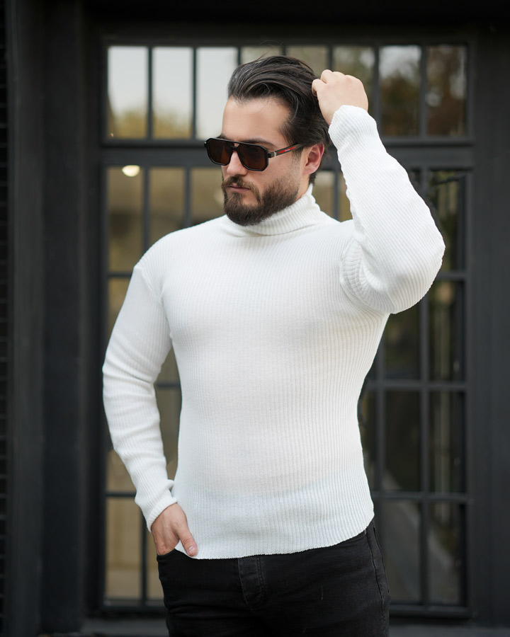 بافت مردانه یقه اسکی کشی ( سفید) کد 6428